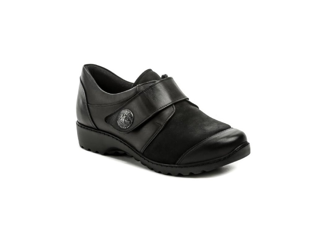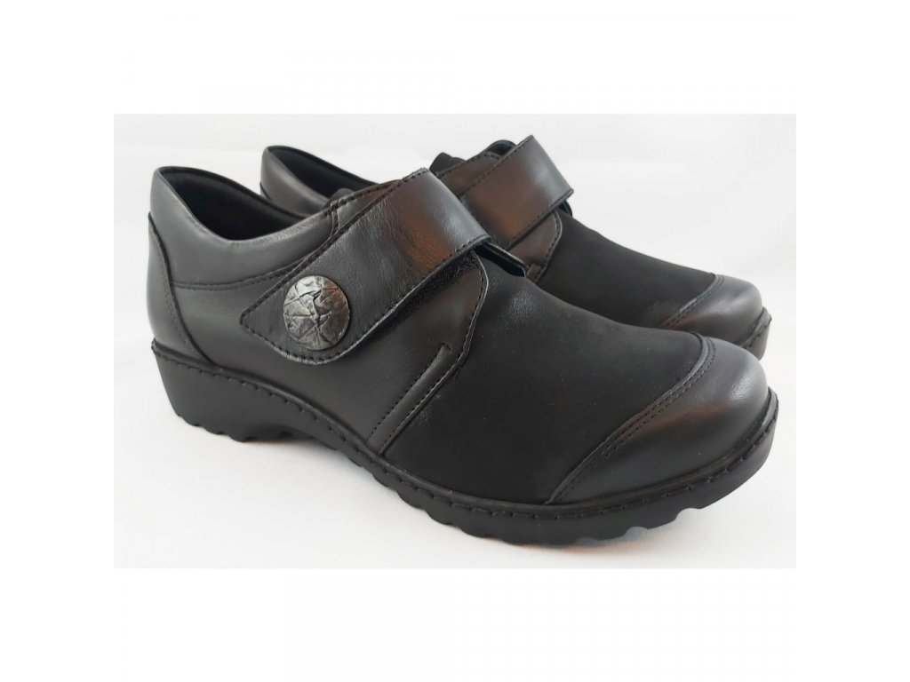 Klasické černé kožené polobotky pro každodenní nošení pro dámy s širším chodidlem. Jejich předností je zdravotně upravená stélka s podporou příčné a podélné klenby, Změkčená stélka a odpružený došlap šetří nejen vaše chodidla, ale také páteř a klouby. Měkká a pružná kůže se okamžitě přizpůsobí i deformitám chodidel jako jsou halluxyy, kladívkové prsty či vybočené malíčky. Vyjímatelná stélka je vhodná pro vlastní ortopedické vložky a pro snadnější údržby. Doporučujeme pro šíři chodidla H. Elegantně a pohodlně - to přesně vám nabízí již klasický model od firmy Axel. Dopřejte si pohodlí i při náročném dni právě s touto obuví.